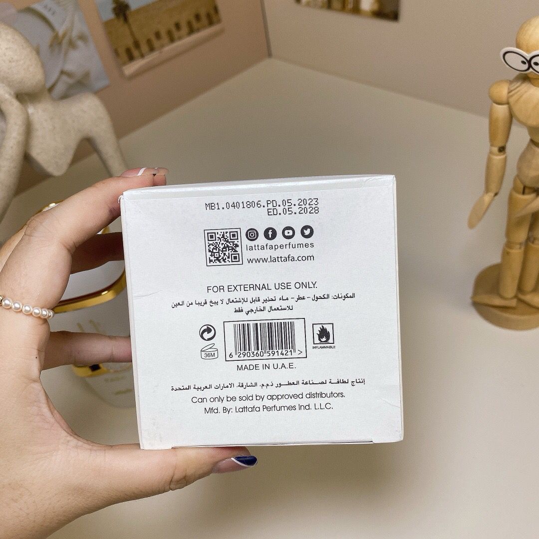 The fragrance then transitions to a warm, sensual base of creamy vanilla and soft musk, providing a lasting and sophisticated finish that lingers gracefully on the skin. Latafa Fragrance White Yara Moi is housed in a refined bottle that reflects its luxurious character and timeless appeal.