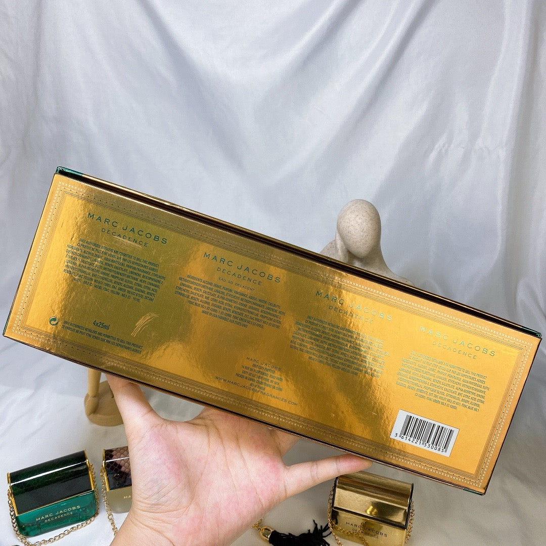 Marc Jacobs Luxury Fan Enchanting Small Handbag Women's Medium Perfume 4-piece set 30ml*4, Each small bag perfume is super cute, suitable for carrying around, the taste is: degenerate handbag, Bohemian goddess, decadent gold, luxurious light